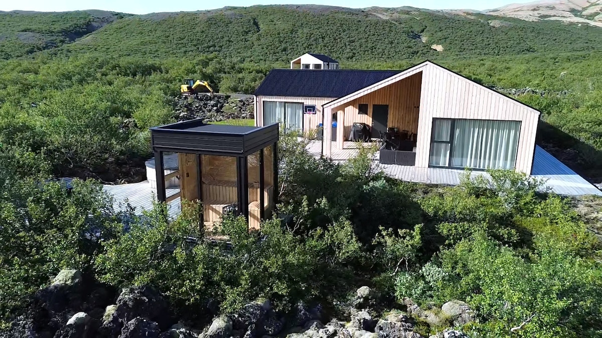 A beautiful five-bedroom villa surrounded by the Icelandic countryside. The villa can be enjoyed in the summer or the winter and is conveniently only 30 minutes outside of Reykjavik. A perfect location for up to 10 people while exploring everything Iceland has to offer. The famous Golden Circle is a short drive away where guests can enjoy Geysir, Gullfoss (Iceland's largest waterfall) and Thingvellir National Park. just installed a jacuzzi and expanded our patio as well :)