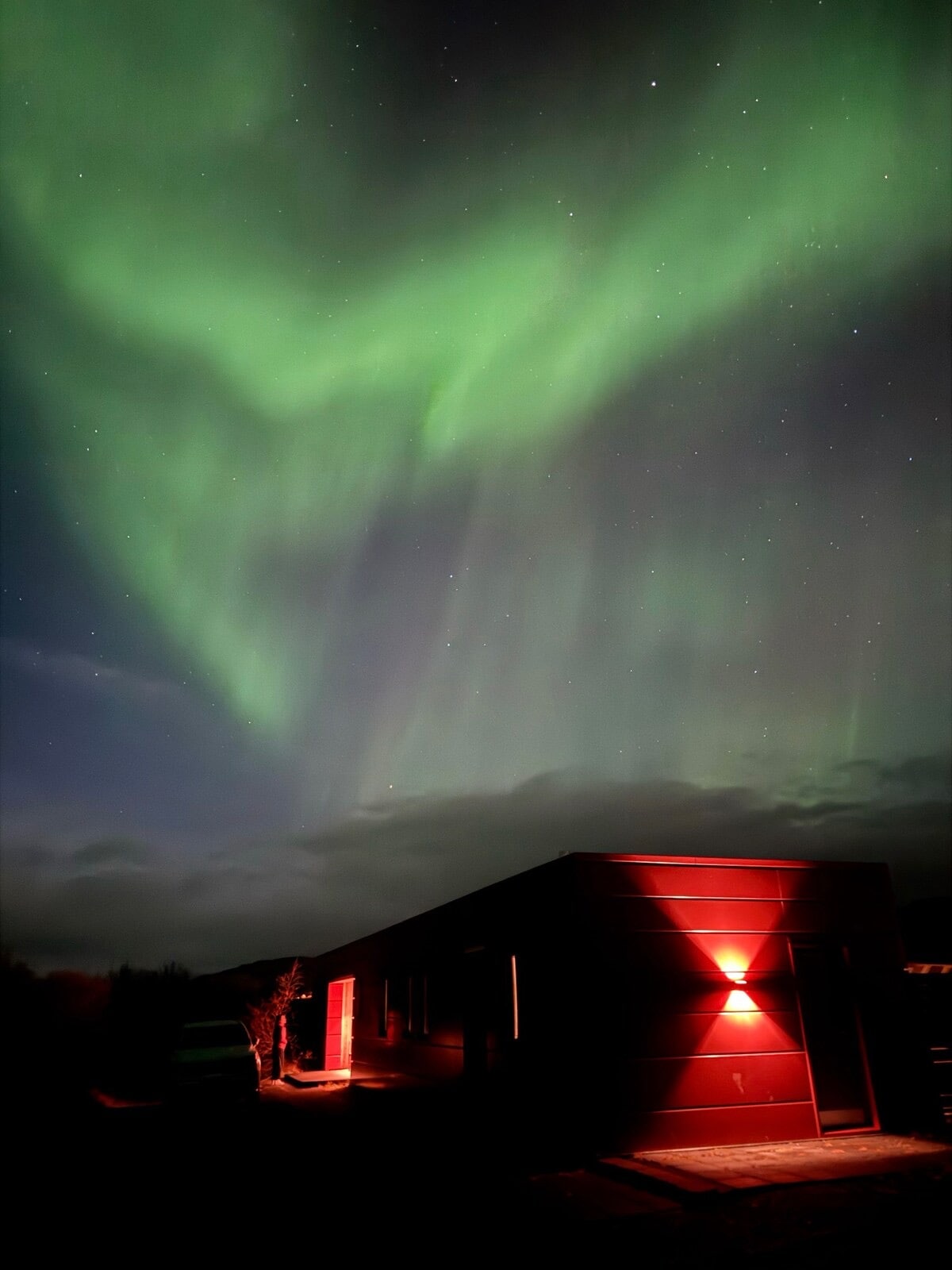 Enjoy majestic views overlooking the waterfall, with mount Baula towering over the Norðurá-valley to the North and the Skarðsheiði mountain range to the South. The lodge is located in Borgarfjörður, an hour's drive from Reykjavík. It sits on a large private land where you will find tranquility and relaxation. The crackle of the wood-burning fireplace creates a cozy ambiance indoors, while the sauna is perfect for relaxing after exploring the endless trails and hikes the area has to offer.