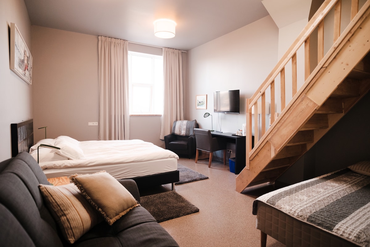 Skulagardur Country Hotel has four rooms dedicated to Airbnb guests, each with a private entrance and a shared kitchen. Excellent base to explore the fabulous Diamond Circle; a pompous name for a route covering some of the best sights in northern Iceland. Guests love the serenity: birds singing and northern lights dancing over the pristine countryside. Visit Jokulsargljufur Canyon, minutes from the hotel, for amazing trails away from the crowds -- yet.