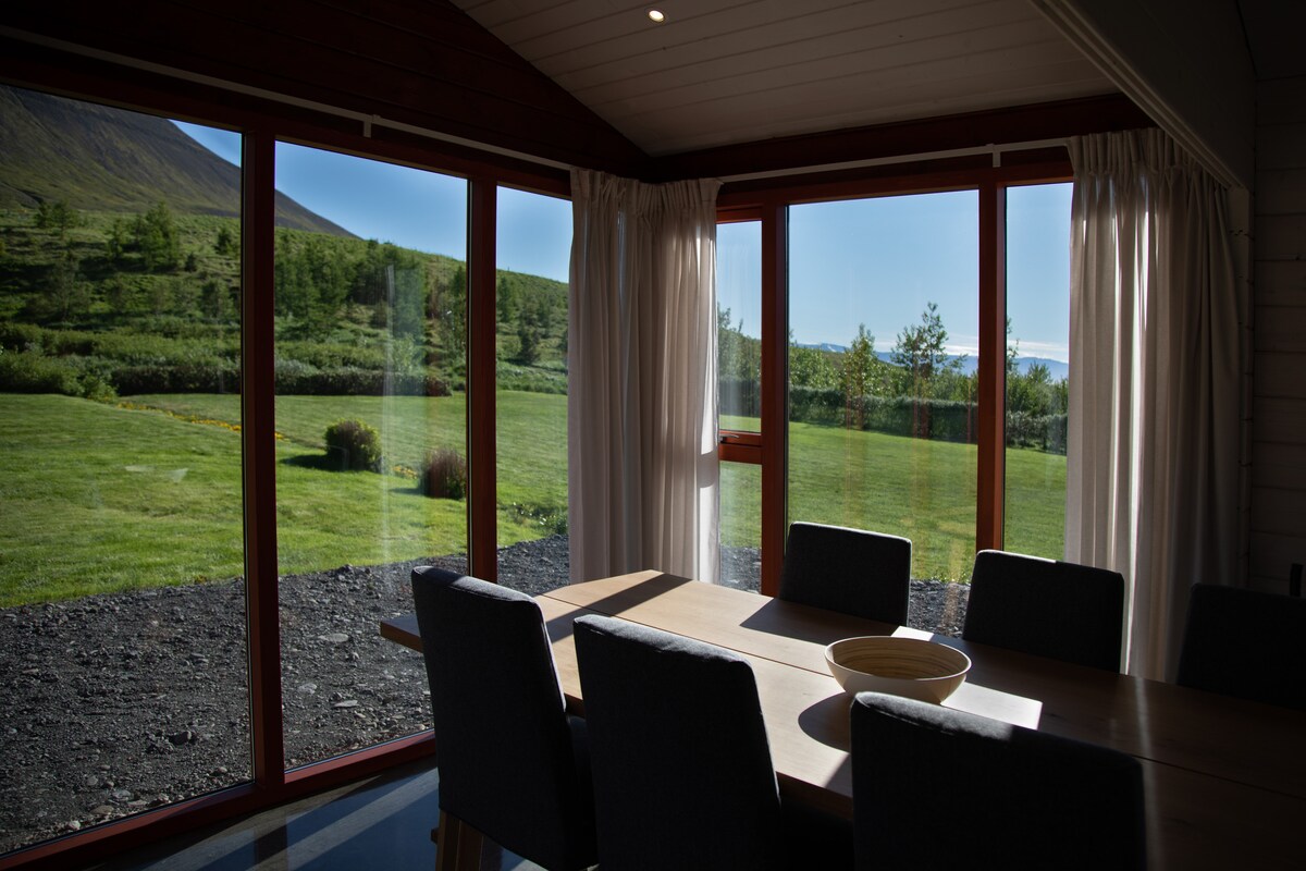 Feel free to explore our website: Dalasetur,is The tranquil valley where Dalasetur is located is perfect for anyone who wants to experience the Icelandic countryside from a bright and beautiful log house. One can experience the outdoors of North Iceland through nature where one can go for a hike on neighbouring mountains, play frisbee-golf or just absorb the natural sights from our hot tub.