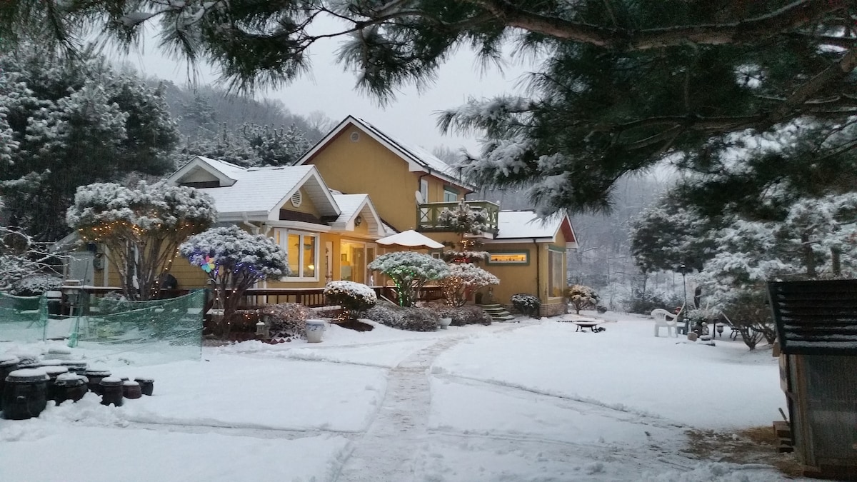We have spacious Garden with lovely pine trees and seasonal flowers. You can feel healing and relax with our lovely calm garden. We have also small farm growing ingredient fruits. you can pick & enjoy eating for breakfast in summer season. You can take a walk along the riverside path near our house and enjoy water skiing and paragliding. Public transportation is also available. It's a 10 - minute walk from Asin Station on the Gyeongui-Jungang Line. Pick-up from Asin Station is also available.