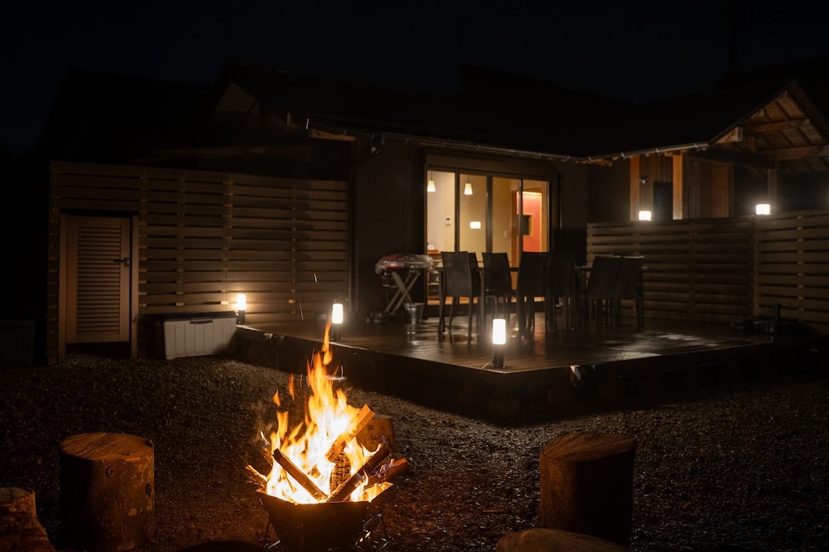 éœå¿ããè»ã§çŽäžæéãèªç¶è±ããªé·åçºã«äœçœ®ããåœãã£ãã³ã¯ãåçãããŒããããŒã«ãŒãªã©ã®å®€å ã¢ã¯ãã£ããã£ãããBBQã»çãç«ã»ãããã³ãã³ã»ãµãŠããŸã§ãå¹ åºã楜ãã¿æ¹ãã§ããâéã¹ã貞åãããžâã§ãã å±å ã®ãã¬ã€ã«ãŒã ã¯å€©åã«å·Šå³ããããå®¶æãå人å士ã§çãäžããã空éãšãªã£ãŠãããç¹ã«åçãšããŒãã¯å€ãã®ã²ã¹ãã«ã奜è©ããã ããŠããŸãã å±å€ã§ã¯BBQãæ¥œãããã»ããçãç«ãå²ãã§ãã£ããèªããæéãããããã§ããçãç«çšã®èªã¯äžæ³ã«ã€ãäºæ¬ç¡æã§ãæäŸãã远å ã®èªã¯å æ¬å çŸåã§çŸå°è²©å£²ããŠããŸãïŒçŸéã»PayPay察å¿ïŒã ãŸãã黿°åŒãµãŠãã¯70床ãã80床ã»ã©ã®å¿å°ããæž©åºŠåž¯ã§ãå±å€ã®ç©ºæ°ãæããªããâãšãšã®ãâäœéšãæ°è»œã«æ¥œãããŸãã å¹ åºãå¹Žä»£ãæºå«ã§ããç°å¢ã§ãã ãã£ãã³ã¯å€§åç¬ãŸã§å®¿æ³å¯èœã§ãæ·å°å ã®ããã°ã©ã³ã§èªç±ã«éã°ããããšãã§ããŸãã åŸæ©åå ã«ã¯ããŒã ã»ã³ã¿ãŒãšãã©ãã°ã¹ãã¢ãããã飿ãBBQçšåãçæŽ»é貚ã®èª¿éã䟿å©ã§ãã é§è»å Žã¯äºïœäžå°é§è»å¯èœã§ãèåé·åICããçŽä¹çŸã¡ãŒãã«ãšã¢ã¯ã»ã¹ãè¯å¥œã§ãã â»ç°¡æããŒã«ã¯å€éå®
