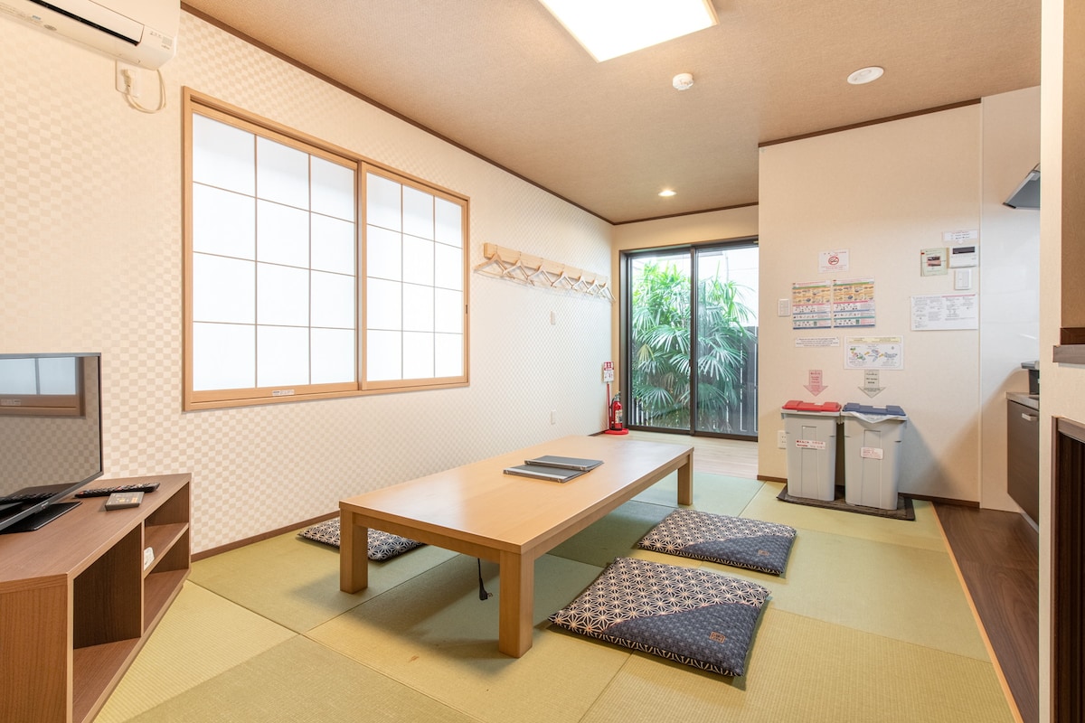 从东京地铁Tozai Line Myoden(妙典)站步行10分钟。2024年对旧民宅进行了全面改建。设计师挑选的高级家具。虽然是旧民宅,但最新设备完备。佛阁林立的安静的住宅区。 出租车: Tokyo Disneyland25分钟。 到银座区域25分钟。 teamLab30分钟。 从房门乘电车: Tokyo Disneyland 40分钟。 银座47分钟。 teamLab60分钟。 涩谷60分钟。 71平方米的平房一天限定一组。 包租一栋房子。 最多定员九人。 妙典站旁边: 大型超市AEON 各种餐厅 有100日元店DAISO。 晚上可以在有投影仪的安静的日式房间里欣赏电影和YouTube。灯光是最低限度的必要条件。 请享受安静放松的睡眠时间。隔壁的客厅非常明亮,可以在热闹的餐桌上和朋友聊天。 新建3米的大型厨房。 请用免费自行车去买东西和散步。