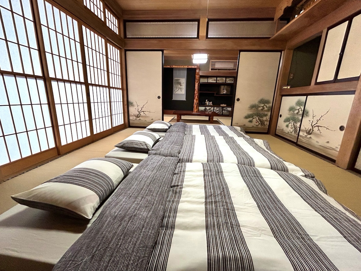花輪 HOUSE ( 1 樓+2 樓) (不需與他人共用衛浴、房內設備) (民宿開車 10分鐘到 COSTCO 南阿爾卑斯倉庫) 在世界各地旅行的老闆、重新整修這一間 古民家 風格的住宿,希望入住者能像在自己家裡一樣度過溫暖美好的時光。 在民宿裡,您可以與家人、朋友一起放鬆而不必擔心他人的干擾。 請在 山梨 留下一段美好回憶,盡情享受你的度假生活。 花輪 HOUSE 是位於 山梨 中央巿 的優質住宿,由古民家改建而成,古民家的日式氛圍,讓人感到舒適、放鬆。 2 間房,適合 3 ~ 8 人入住。 配備廚房、冷氣(暖氣)、電視、洗衣乾燥機、微波爐、電磁爐、冰箱、電熱水壺、空氣清淨機、餐具、毛巾⋯⋯ ★ OGINO Tatomi (超級巿場): 走路 1 分 ★ 免費 Wi-Fi ★ 免費停車場