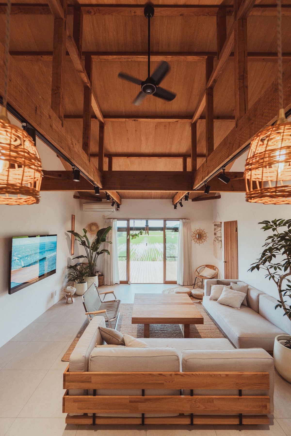 千葉・一宮東浪見に佇む、1日1組限定の田園リトリート。大きな窓から続くウッドデッキは、田んぼと空に溶け込むような“インフィニティサワ”が象徴的。大きな窓の向こうに広がるのは、季節ごとに表情を変える田園風景。南風が稲穂を揺らし、心地よい涼しさを運んでくれます。 室内は木の温もりを感じる開放的な空間。ゆったりとしたソファや優しい灯りに包まれ、日常を忘れてリラックスしていただけます。 お子さま連れのご家族にも安心してお過ごしいただけるよう、キッズスペースやお布団での寝具をご用意。自然の中で、五感をひらいて過ごすここにしかない滞在体験をお楽しみください。 ※自然が多い場所のため、虫がおります。ご了承ください。 ※夜は一宮の夜空をお楽しみいただくため、テラスではランタンのみをご用意しております。 ※屋外でのBBQは19時まででございます。 屋外の食べ物は就寝前に必ず片付けてください。カラスや猫に荒らされてしまいます 。 ※敷地内での花火はできません。近くの海でお願い致します。(近くの海まで徒歩10分ほどでございます。)