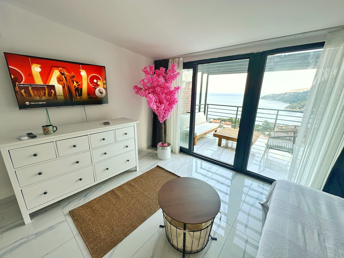 Turunçta muhteşem deniz manzaralı 2 oda 1,5 banyolu ,huzur dolu ,modern 5 yıldız konforunda bahçe katı