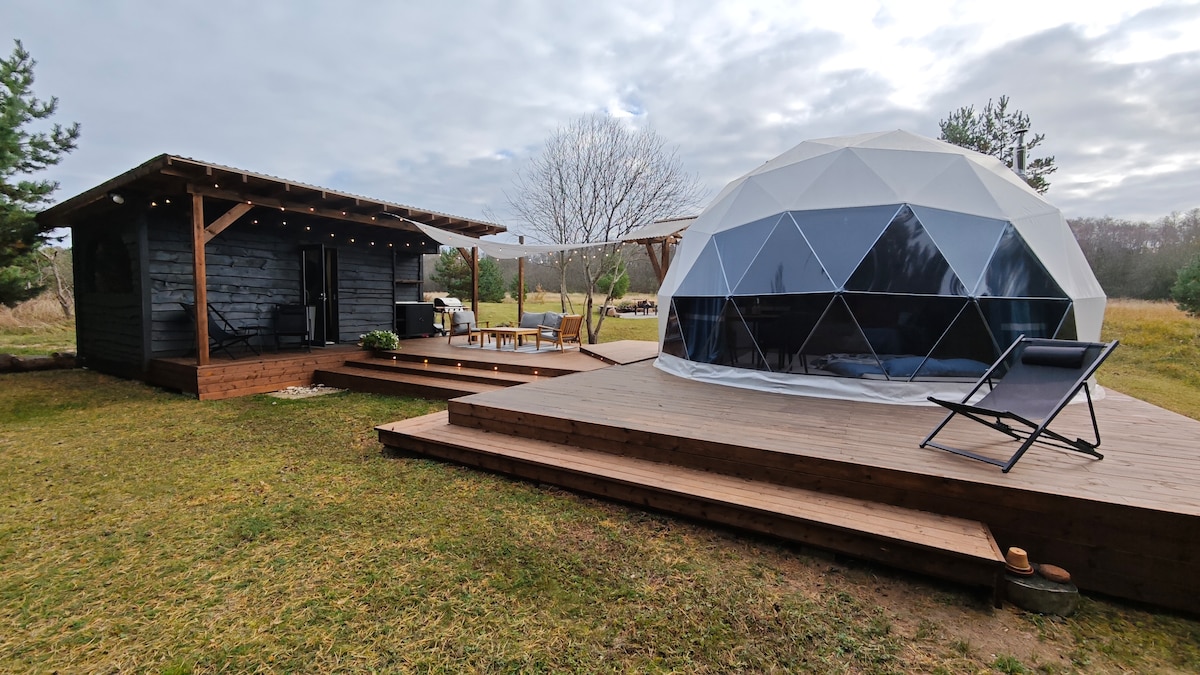 Kuppelmaja koos saunaga, avaneb vaade merele.