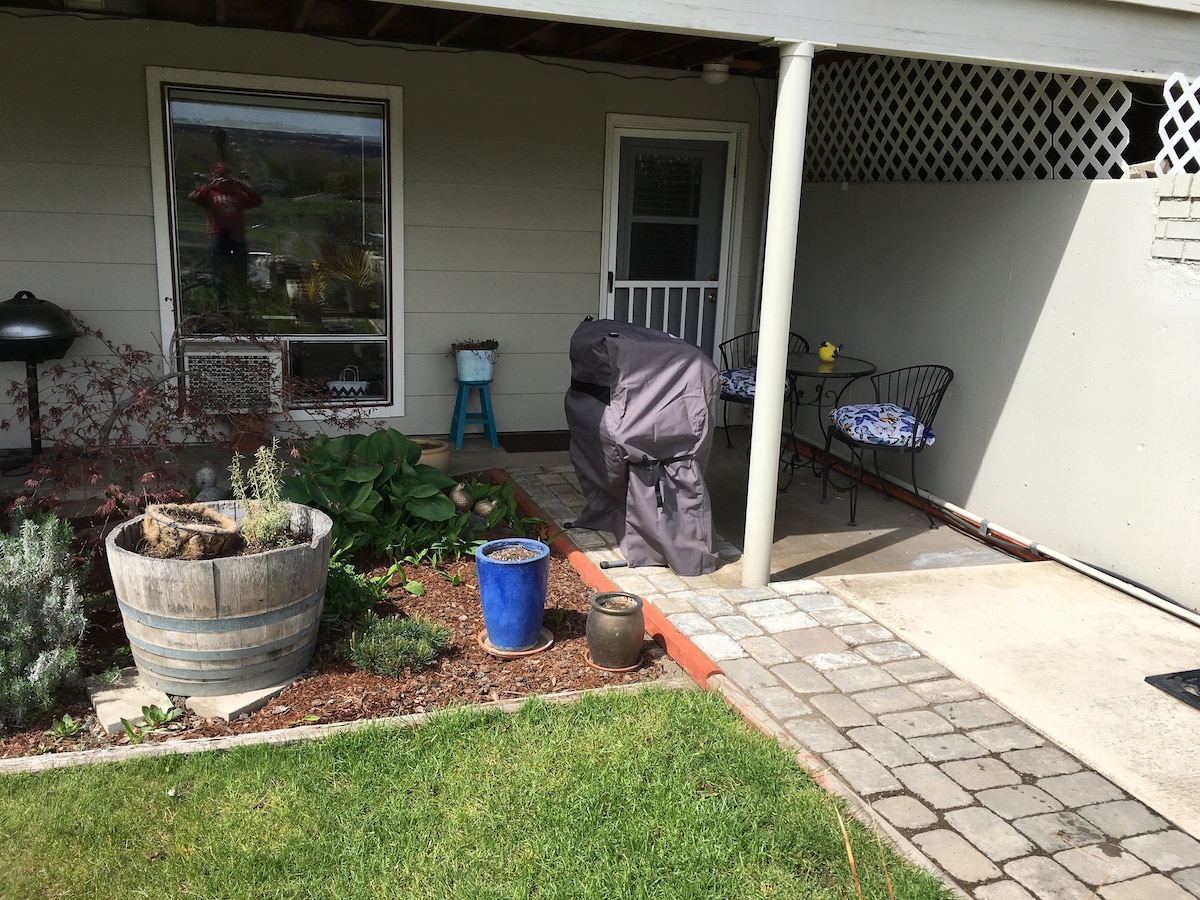 Enjoy sweeping views of the Snake river from your lawn and garden view terrace. The property is adjacent to a park and just above the levee walking &bicycling trail which runs along the river. Great location to access Clarkston and Lewiston sites of interest (golf course, jet boat trips river parks, scenic drives, shopping, etc) only 5 minutes from airport..Only 35 minutes from WSU and U of Idaho.smart tv. No smoking on premises. Smokers are required to go to the park next door to smoke