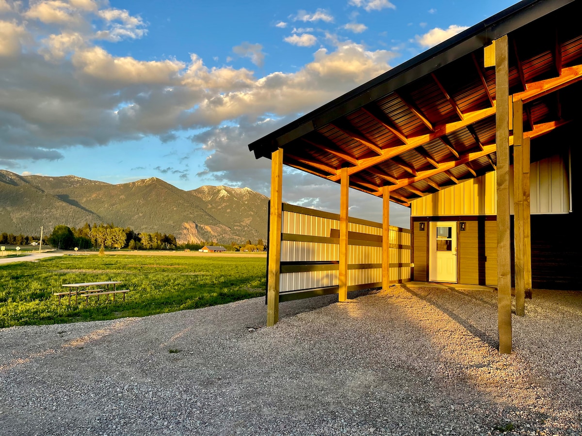 Welcome to our cozy farmstay for two on a working sheep farm. Minutes from the Flathead River and Lake, National Bison Range, and Ninepipe Wildlife Refuge. 1.5 hrs to Glacier National Park and Whitefish Mountain Resort. 1 hr south of Kalispell, 1 hr north of Missoula. Relax on your private deck with a mountain view, beautiful sunrises and sunsets, and farm-fresh eggs with light breakfast ingredients. Unwind and relax!.