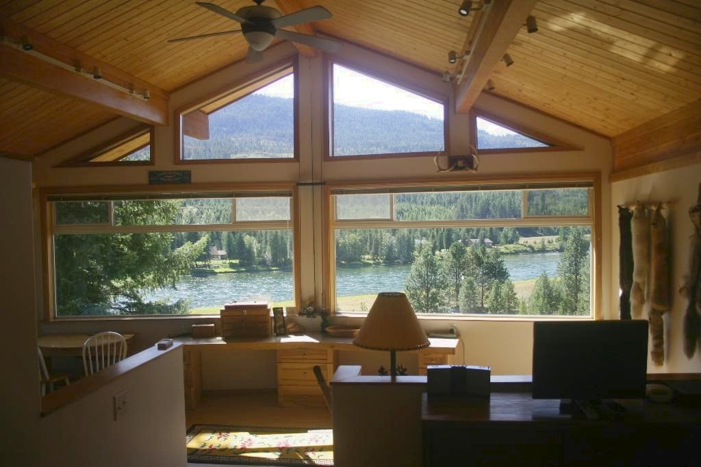 Studio guest house with private indoor spa on 600 feet of Kootenai River waterfront in the middle of National Forest. Spectacular views, extensive decking, full kitchen, Keurig coffee maker (K-cups provided), microwave, stove, oven, refrigerator, DVD, mini-split AC & heating, fold out couch. Surrounded by gated perennial gardens, private walks on property, beautiful path to riverside. Easy access to hiking, fishing, mountain biking, skiing, snowshoeing. Glacier National Park 2.5 hours East.