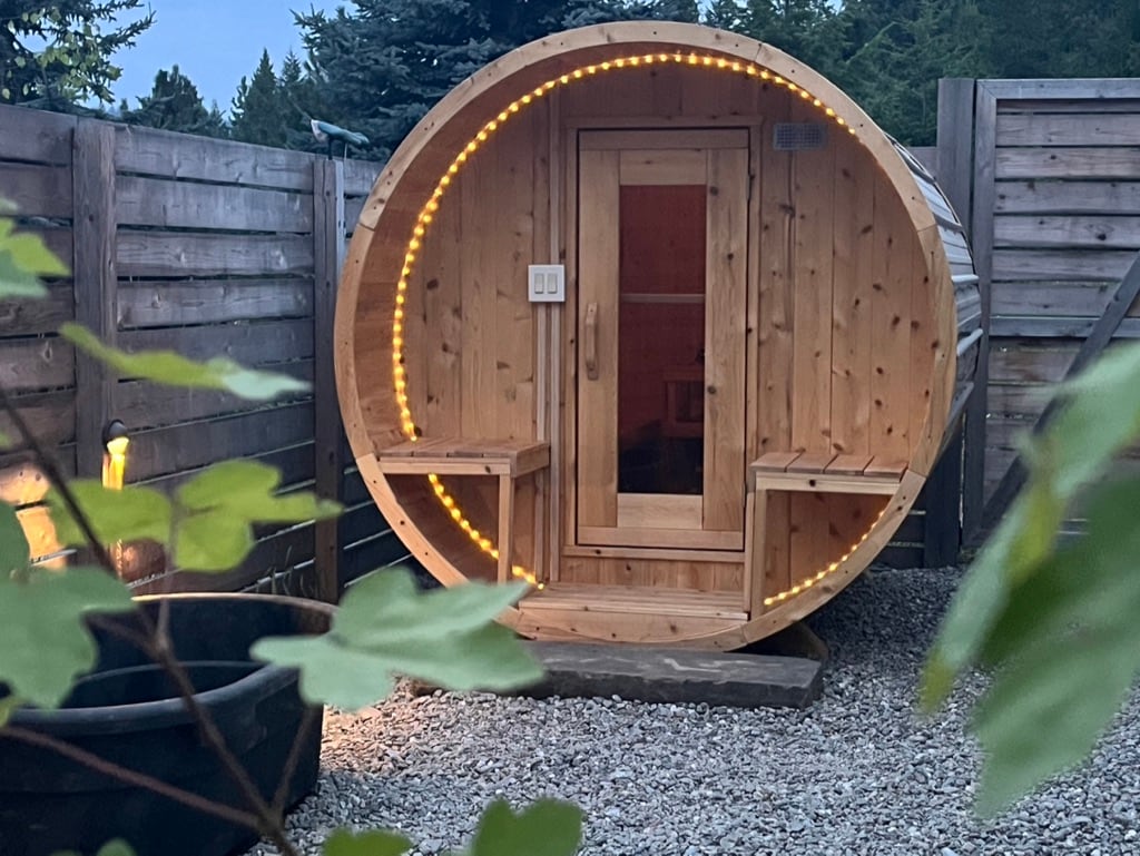 Welcome to the Tiny Blessing Sauna Retreat – A Sanctuary for the Soul Escape to a serene forest where comfort and nature harmonize to restore your soul. This 400-square-foot retreat offers modern amenities paired with the beauty of the outdoors. Rejuvenate with a therapeutic sauna and invigorating cold plunge under the stars. Watch deer and wild turkeys roam as you relax in this peaceful oasis. Let the quiet magic of the forest renew your spirit and reconnect you with life’s simple joys.