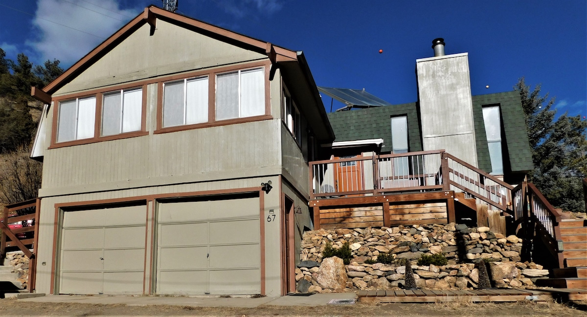 Lic#2022-05. Enjoy a private & centrally-located mountain side home .5 mile from downtown Idaho Springs & Indian Hot Springs. It’s a 2 room unit attached to the main home but separated with its own private entrance. Unit includes mountain views & sits on a .5 acre with a fenced in yard open to you and your dogs. Our home backs up to Arapaho national forest. Enjoy hiking, mtn biking, camping, rafting, ziplining, fishing, and numerous ski resorts all within 25-60 min. **PLEASE READ NOTES BELOW**