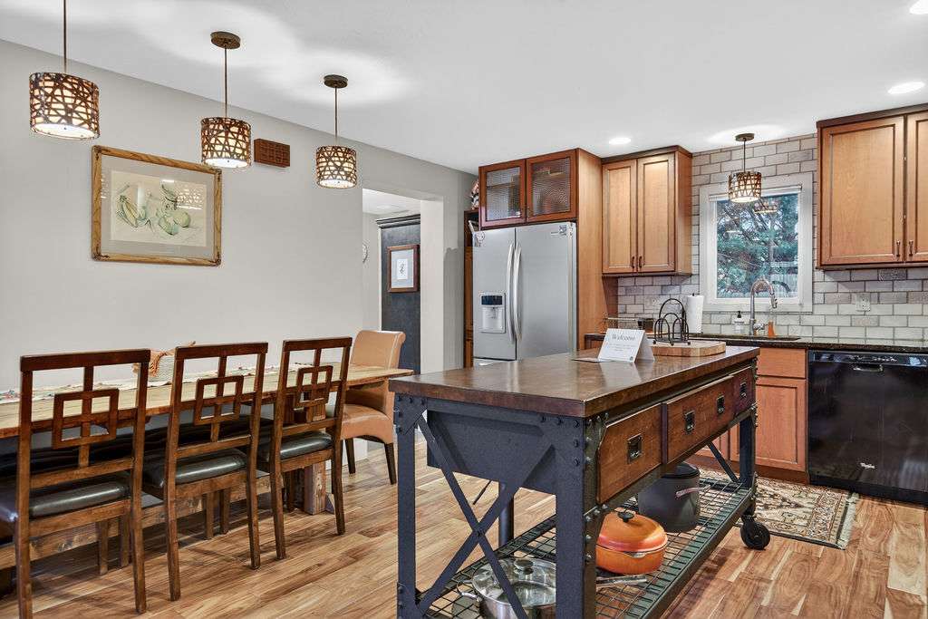 Welcome to the 24th Street Bungalow, a modern eclectic home in Boise’s historic North End. Named for the warmth of its fireplaces and the craftsmanship reflected throughout the home, the Bungalow is an artist-owned space filled with character, texture, and thoughtful design. Inside, you’ll find warm wood details, unique architectural elements, multiple fireplaces, and curated spaces that make the home feel both creative and comfortable. The custom kitchen opens into the main living and dining a