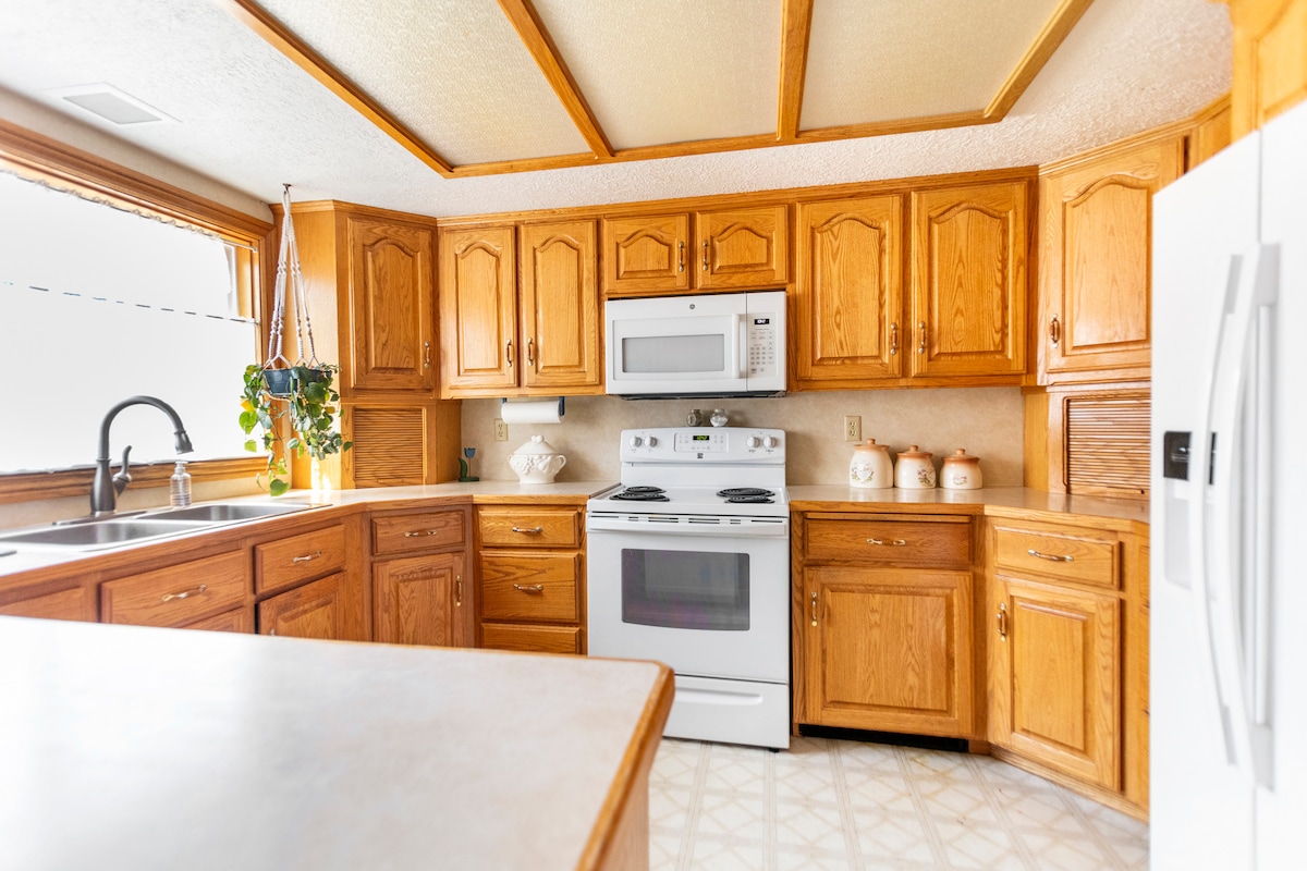 Welcome to our homey Bed & Breakfast! Nestled in a charming neighborhood, our large home offers a welcoming retreat to travelers. This is our "Classic King Room". It is a cozy private bedroom with a King bed. With many other shared spaces and amenities to enjoy — Embrace the charm of communal living, while also having the privacy of your own room. Your home away from home awaits! We serve eggs, toast, cereal, oatmeal, and fruit for breakfast. We have a blender to make smoothies as well.