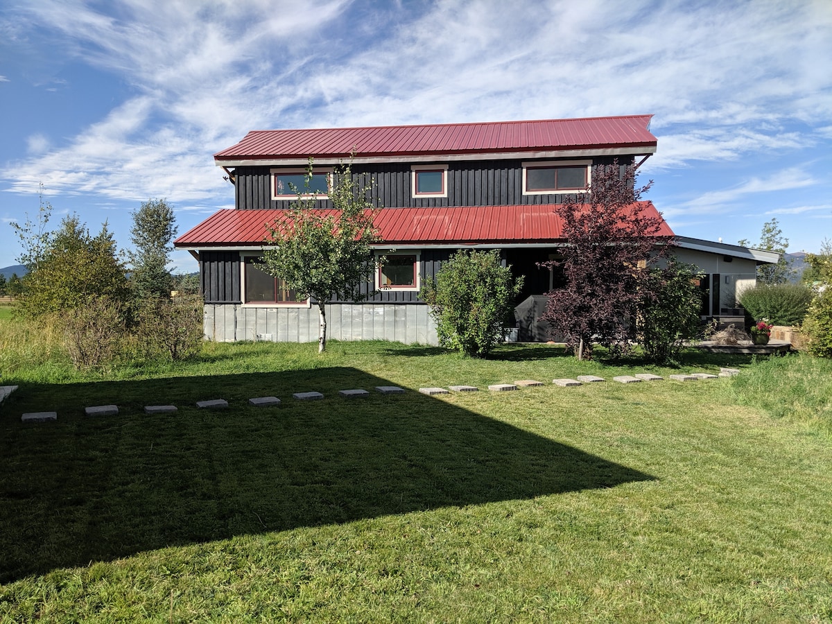 Enjoy your stay in this 2100 sq ft truss built home 2 miles from downtown Victor on 3 acres. The private home features a downstairs master suite and an upstairs junior suite both with queen beds. Both have their private bath and shower. Comfortable family room connected to the kitchen. Well equipped kitchen for your cooking pleasure and a bbq just outside the kitchen door available for around the year use . Enjoy beautiful sunsets from the sauna deck or relax on the back deck at the house.
