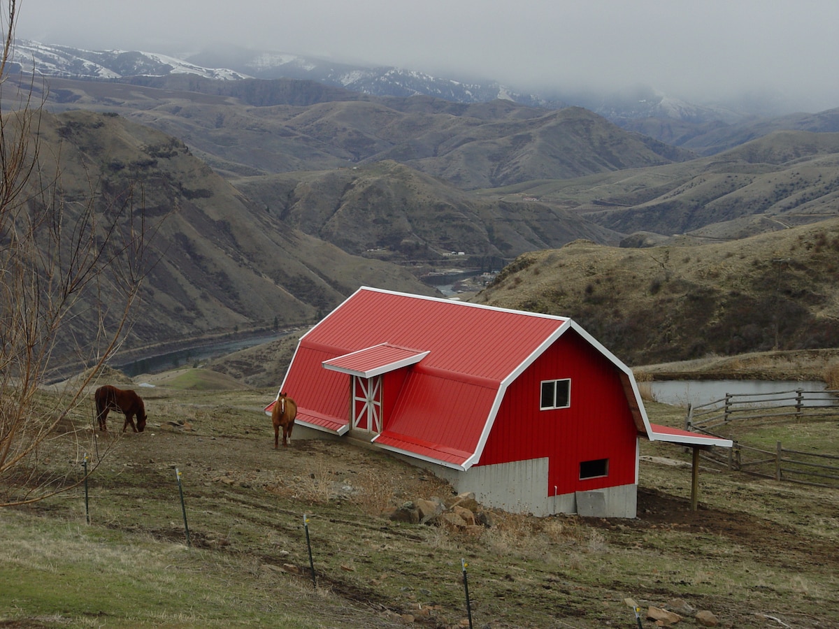 No cleaning fees or pet fees! Rustic riverside studio cabin on the Lemhi River. Cross our private railroad car bridge to find your own acre of river front only a 5 min. walk from downtown Salmon. Enjoy peace, quiet and unobstructed views of the Divide & Bitterroots. Cozy and comfortable, this one room lofted cabin is an ideal location to relax and enjoy nature. The kitchen is set up for cooking and books & board games are waiting for you.