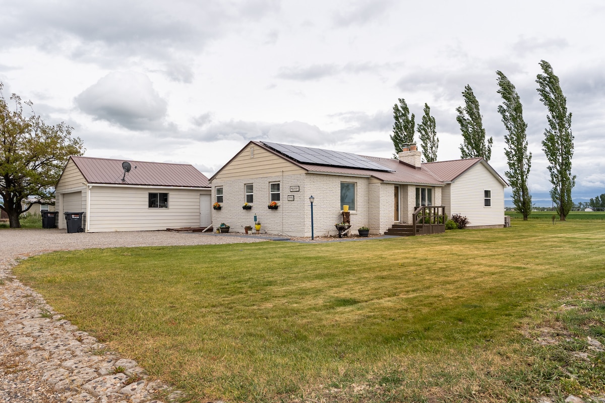 Authentic farmhouse nestled in barnyard of a working ranch. Great Mountain views out every window. The house is comfortable with country charm. Mountains within 10 miles in two directions. The Bear River curves through the ranch. In the summer enjoy the shade from the huge trees in the yard. The convenience of a small town 1.8 miles away. Lava Hot Springs, Soda Springs, Historical Chesterfield close by.