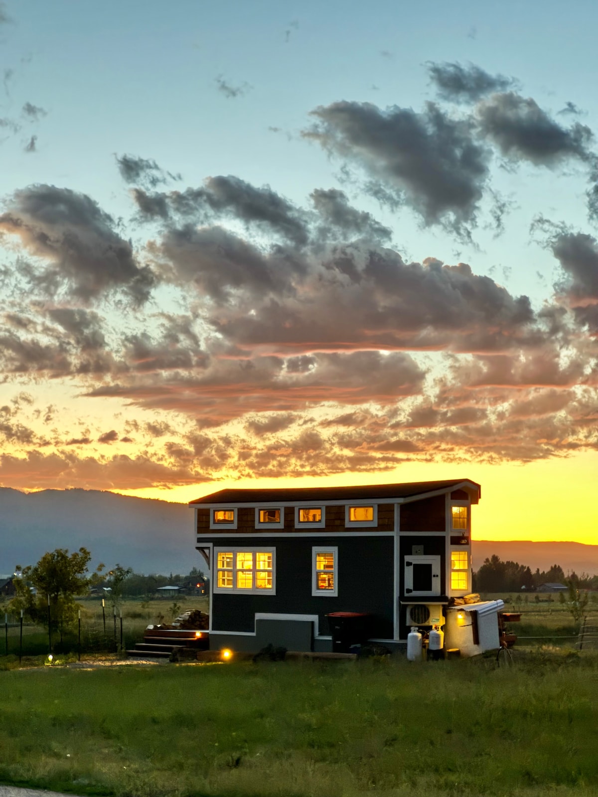 Truly unique stay! With a stunning location & view, this beautiful tiny house is nestled at the top of the Teton Valley and puts you in the perfect spot to access some of the country's best National Parks, ski resorts, fishing rivers, and bike trails. With a full bathroom/shower/kitchen/laundry this tiny has an ultra-comfy living space that is laid out in a way that creates distinct separate spaces to hang out and works perfectly for couples, small groups of adventure buddies, or small families.