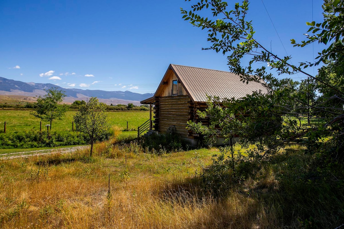 A cozy one-room log cabin on a quiet 5-acre property with horses and a friendly cat in Bellevue, perfect for relaxing and unplugging. Enjoy peaceful views, a charming porch, frequent wildlife sightings, and easy access to walking, biking, fishing, and nearby mountain towns. Our house is across the driveway. We are friendly and happy to chat or let you enjoy the peace and quiet