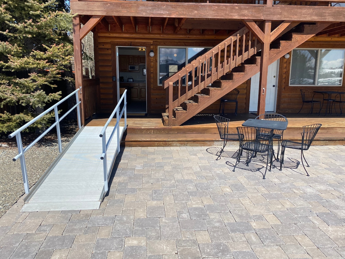 Single, queen size bed lodge room, wheel chair accessible on ground level with ramp access. Full bathroom. Front and back porch with views of sawtooth mountains and valley creek preserve. Table and chairs on front and back porch. Multiple Wi-Fi connections, smart TV. Kitchenette with Electric stove top, small fridge/freezer, sink and microwave. Toaster, coffee maker. Lots of parking on site close to room. Traitor/ RV parking available. Bath tub/shower is NOT a walk in tub/shower. No dogs/pets.
