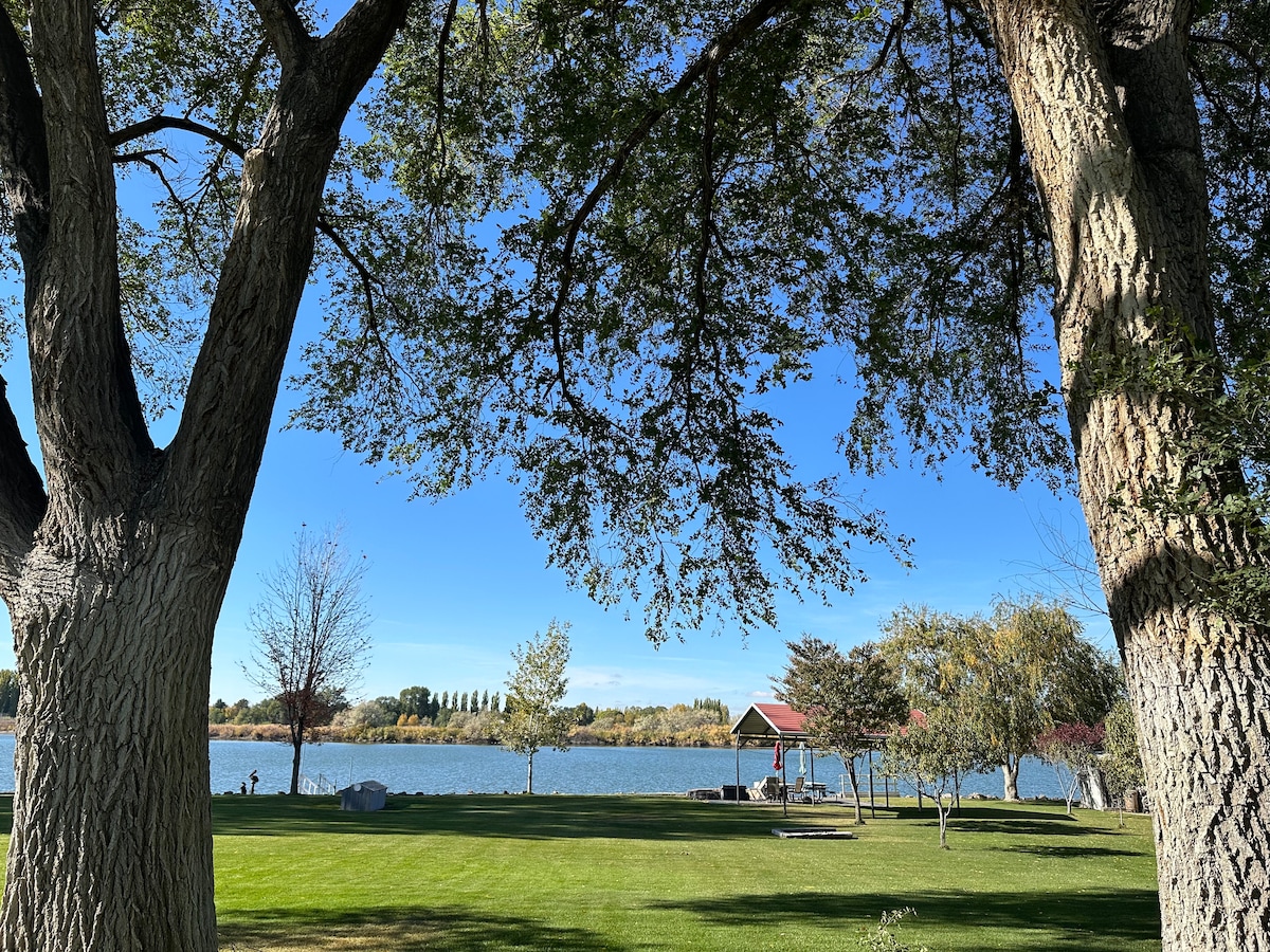 Take it easy at this unique and tranquil getaway. Besides relaxing in a newly constructed apartment, adventure awaits outdoors. It is centrally located in 1000 springs area of Hagerman. It is on the Snake River with river access and a dock for your watercraft. Kayaking to Blue Heart underwater springs or around the nature preserve of Ritter Island in less than an hour away. Bass fishing on private ponds is available. Fall through spring is spectacular for bird watching including eagles