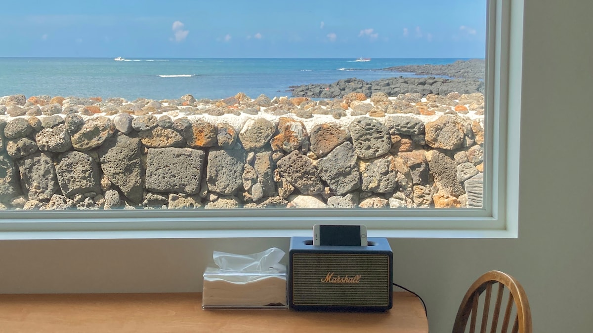 안녕하세요. 바다와 맞닿아 파도소리를 벗삼아 도심속의 답답함을 잊게 하는 공간을 만들고자 합니다. 공항과 20분거리에 있는 저희의 공간은 전객실이 눈앞에서 제주의 푸른 바다를 보실 수 있습니다. 공간구성 3층높이의 12평형 공간(엘리베이터 이용) 1. 침실공간 : 객실은 원룸형의 취사가 가능한 공간입니다. 침대, 벽걸이형 TV, 티테이블겸 2인식탁, 옷걸이, 스탠드, 싱크대, 에어컨, 소형냉장고(냉동고 별도), 인덕션 2. 주방 : 2인용 식그릇 및 주방도구 3. 욕실 : 해바라기 샤워, 수건, 샴푸, 린스, 바디워시, 비누, 화장지 (칫솔은 위생관리법상 비치가 불가한점 양해바랍니다.) 4. 테라스 5. 바베큐공간 바다와 연결되어지는 오션바베큐: 비용 2만원(숯과 그릴을 준비해드리고 있습니다.) 로비옆, 우천시를 감안해서 별도의 바베큐공간이 있습니다. 6. 주차장 : 전기주차 가능합니다. 7. 세탁실 및 건조기는 1층 현관에 별도 요청바랍니다. 감사합니다.