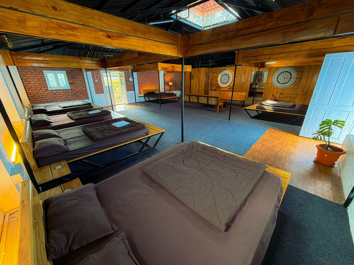 Forget your worries in this spacious and serene space located on top of a hill with the best view to offer in Kodaikanal. An entire top floor of a stone building especially designed for groups to relax and unwind , to gather , share stories and fun together with mesmerising views of Kodaikanal with some great food and services . The views from the private balcony will blow up your mind and especially the sunrise view is the best from the space . So come up for an unforgettable experience