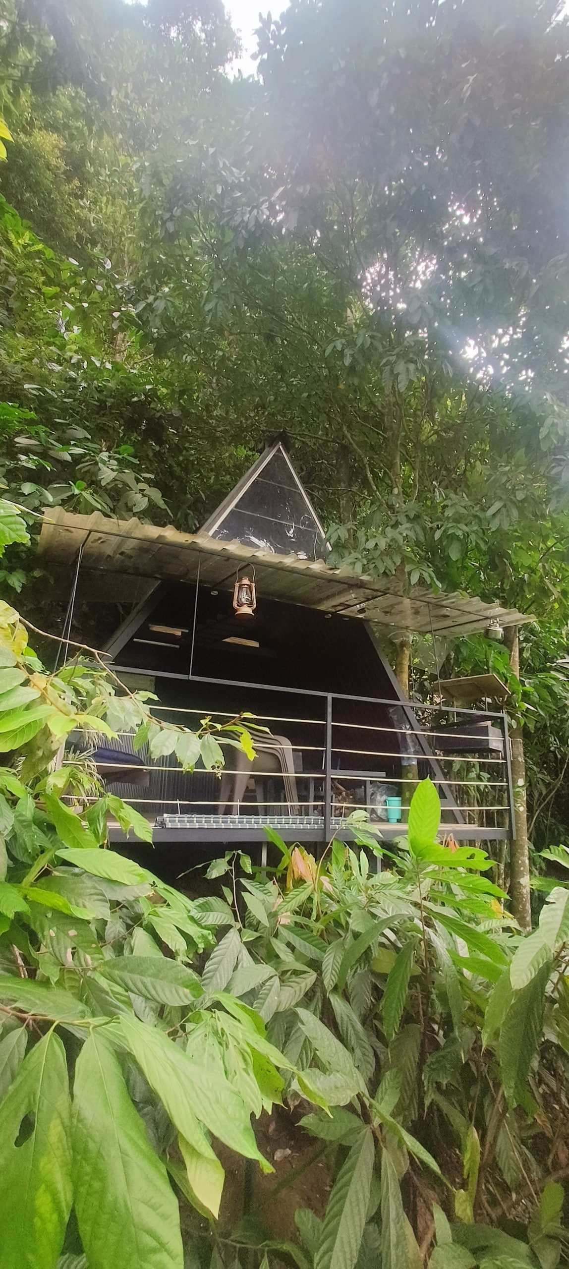 Nestled on a foundation of natural rock ..It's a A FRAME (215 sq ft)structure and a outside area (100 sqft)for campfire and barbeque. Both the deck connects with a 2 metre bridge and the only one in 100 metre circle provide extreme privacy. The property runs on solar so their is no issues on power failure .From road their is a short 80 meters trek to the property makes you feel like you are inside a forest .Party box and heavy sound after 8 pm not allowed.