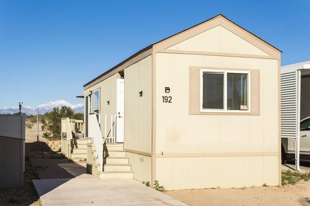 Live it up, and take it easy at this unique and tranquil getaway! Located in a remote hot springs gated resort, this is a tiny house/RV, manufactured home community. Relax in healing mineral pools and hot tubs, just two blocks away! Enjoy all the resort's amenities. Hike nearby, or drive to Joshua Tree National Park. Explore Palm Springs, 25 miles away. Take an evening walk through this friendly community. And after a perfect day, watch ducks in the pond and sunsets on the mountains!