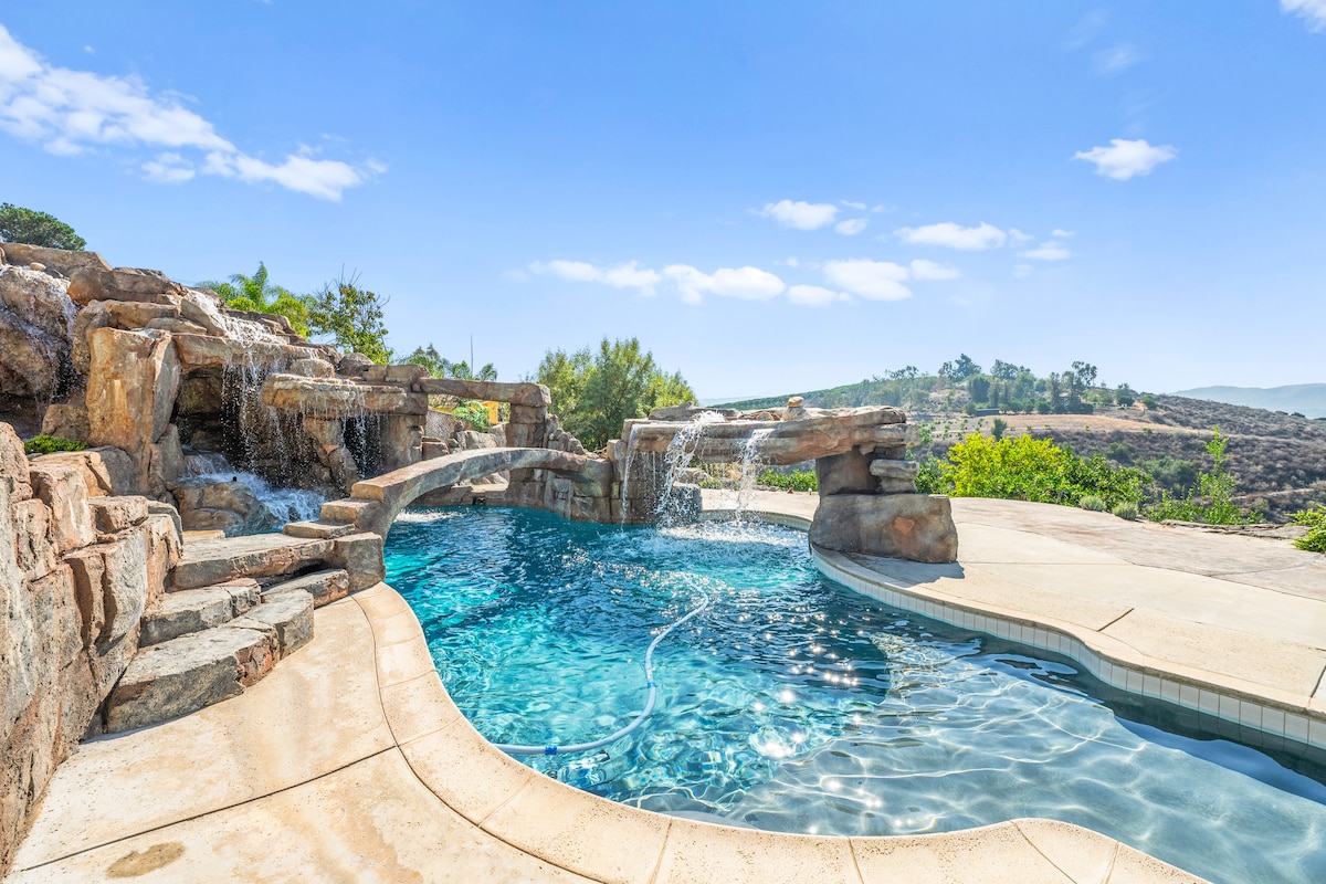 山坡绿洲、泳池、水疗中心和全景山谷景观