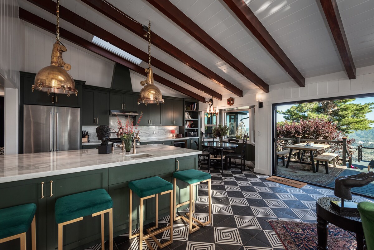Perched high on Idyllwild’s North Ridge, Treetop Terrace sits in a canopy of oak trees and offers amazing views from its expansive upper deck. Enjoy the charm of its mid-century architecture and vintage-inspired furnishings. Features include floor-to-ceiling windows, an open-concept layout, a recreation room, and wheelchair accessibility. Conveniently located 3-minutes from the village, it is easy to enjoy the charms of Idyllwild and the beautiful San Jacinto mountains from the Treetop Terrace.