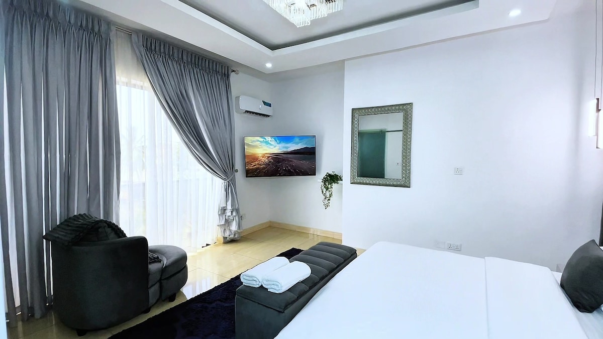 A luxury 1-bed studio apartment designed for both relaxation and fun. The space features a fully equipped kitchen with premium gadgets, a cozy living area, high-speed internet, and top-tier entertainment including a PS5 and a classic chess board. Perfect for solo travelers, couples, or business guests who want a modern, secure, and peaceful stay in the heart of Lagos.