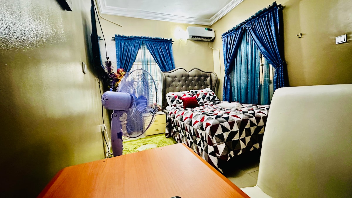 You won't experience darkness here. Tarred good roads to this apartment; a place to love, Serene environment, comforting ambiance. Grocery Market at walkable distance. {Pickup Available} 6x6 Bed Size Hit the book button, you have found the right home to stay. - Enjoy your private space - Relax at the sitout while you enjoy fresh air Enjoy uninterrupted 24HRS power here, there will be power in the home at all time.
