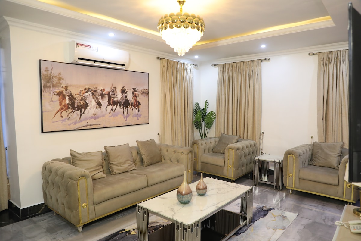 The Electra apartments are setup with the guest in mind. It is located at no 2 Olujola st off Jonathan Coker road off Iju road Fagba junction. It is stylishly furnished with top-notch facilities, standard security, regular power supply , free parking on premises, daily cleaning. It is surrounded with stores where guests can do their shopping. There is a 16 KVA generator for backup in case public power supply is cut off, but guests would provide fund for fueling whenever they need to use it.
