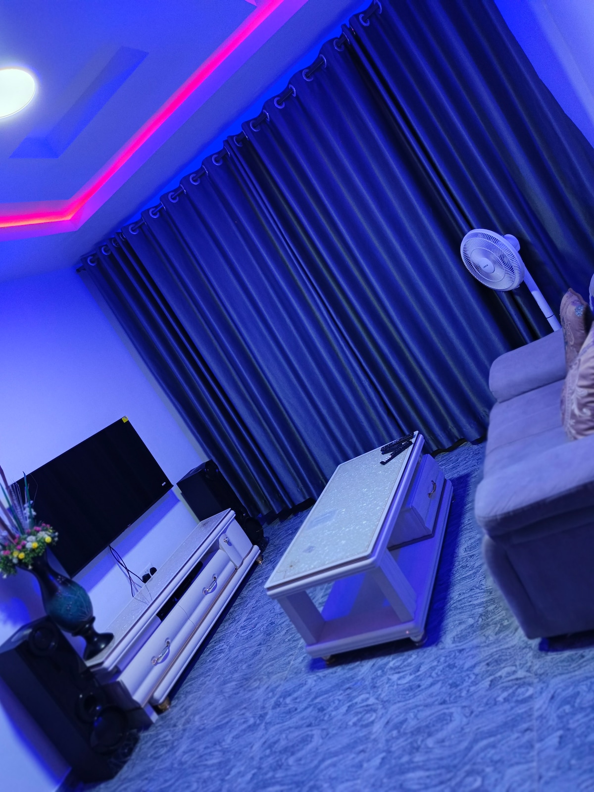 Your family-friendly apartment offers exceptional comfort with a Smart TV, unlimited internet, and 24-hour security supported by a reliable solar backup system. It features a fully equipped kitchen, DSTV and Netflix, running water, a washing machine, and air conditioning in all rooms. Guests also enjoy regular housekeeping, free parking, and a serene residential environment. Exclusively for your use, this strictly residential space provides privacy, peace, and ultimate comfort.