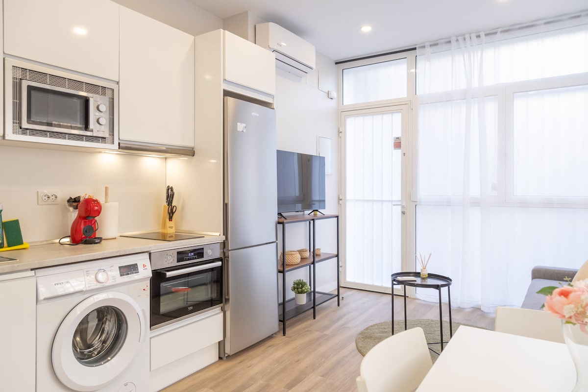 This beautifully designed apartment combines comfort and style, making it ideal for up to 4 guests. The apartment features bedroom, bathroom, a cozy living room with a sofa bed and TV, as well as a fully equipped kitchen and dining table - perfect for a relaxing and comfortable stay. Conveniently located just a short drive from Madrid Airport and only a 5-minute walk from the Planilonio Shopping Mall. It also offers excellent proximity to IFEMA Convention Center and the Metropolitano Stadium.