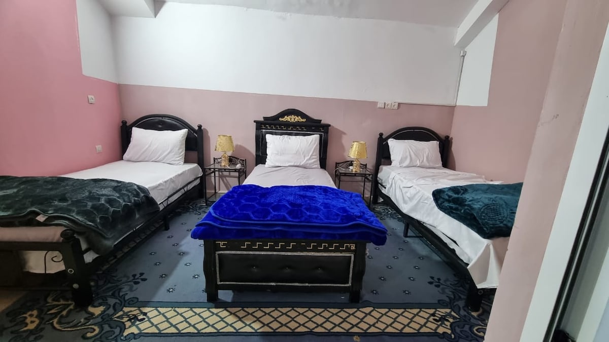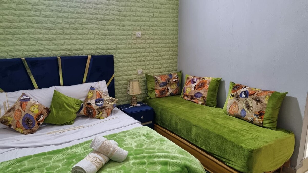 Détendez-vous dans cet espace calme et élégante bel maison dans le cœur ville el hajeb composé d'une (2)chambre avec balcon une salon une cuisine ouverte et bien équipée d'une salle de bain chaude, d'une salle de sport ,d'une connexion Wi-Fi,d'une (3) smart tv,, osn+,shahid gratuit et d,un chauffage en gaz.d.,une lit pour les bébés d,une biraux pour votre travail d,une terrasse pour manger en plein air