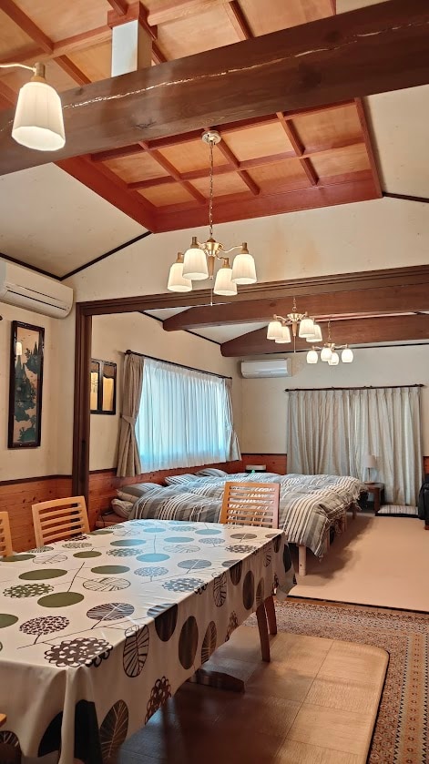 Our house is traditional Japanese style house. 150 years old and in a very quiet location. We are renting house. Not shared with other guests. There are 2 bedrooms(Tatami-room) and 1 living room, gameroom, bathroom, shower toilet, all of the room are only for you. *Children is free of charge if your children don't need a bed and break fast. There are air conditioners in bedroom and livingroom.