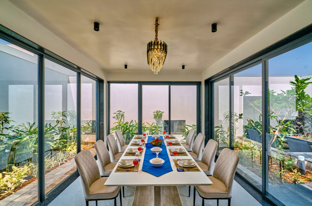 This is a luxurious 5 BHK villa situated amidst the stunning mountains of Sahyadri. The name "Panache" refers to flamboyant style or flair, and this villa certainly embodies that essence. The home boasts of a unique A-shaped design, private infinity pool, Veranda with a cosy lawn, modern interiors & comfortable bedrooms. Whether you're in search of private villas in Igatpuri, family villa in Igatpuri with private pool or the best luxury villas in Igatpuri, this place has it all!