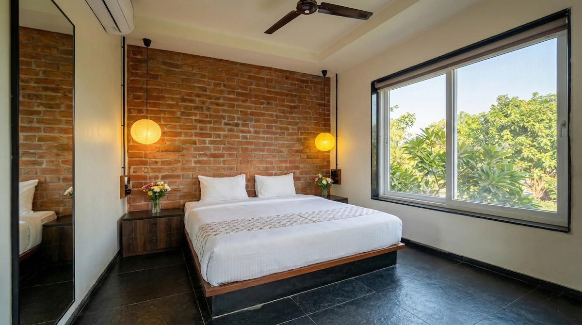 StayVille - Casa Cruda is nestled in an authentic village of Maharashtra surrounded by beautiful landscapes with green rice paddies as far as the eye can see, yet still close to town center of Igatpuri. The villa is designed by an award winning architect with the idea of open concept interiors for a seamless blend of indoor/outdoor living. This 5 bedroom villa is ideal for families or groups of friends looking for a unique serene private getaway with modern comforts and tranquil surroundings.