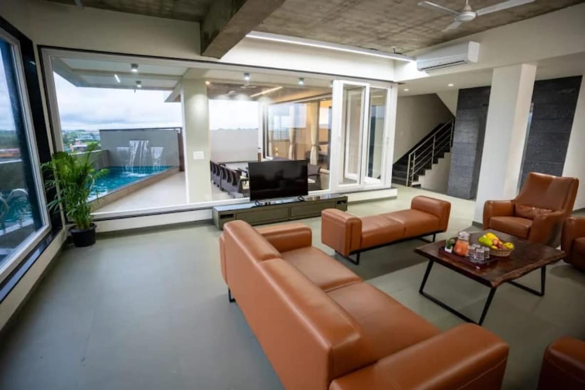 This is a luxurious 5 BHK villa situated amidst the stunning mountains of Sahyadri. The name "Panache" refers to flamboyant style or flair, and this villa certainly embodies that essence. The home boasts of a unique A-shaped design, private infinity pool, Veranda with a cosy lawn, modern interiors & comfortable bedrooms. Whether you're in search of private villas in Igatpuri, family villa in Igatpuri with private pool or the best luxury villas in Igatpuri, this place has it all!