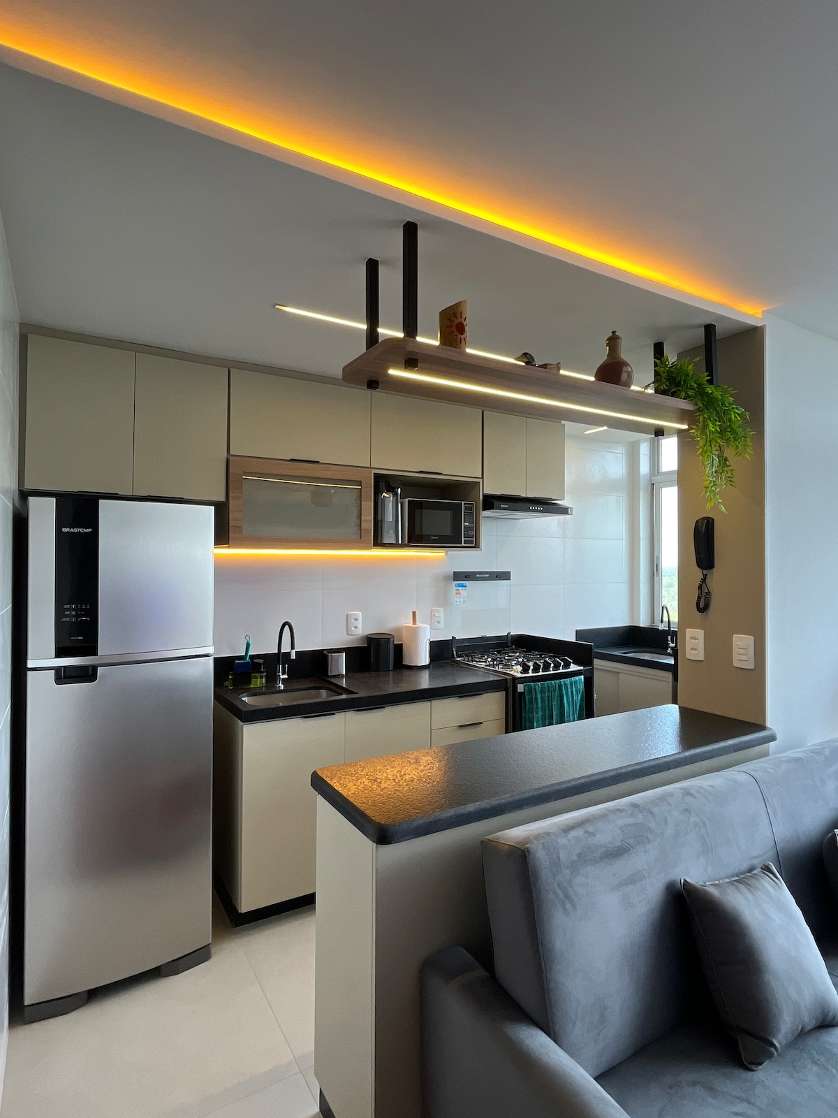 O apartamento é claro, arejado e cuidadosamente preparado para oferecer conforto. Dispõe de duas camas de solteiro que podem ser unidas, formando uma cama de casal, além de TV a cabo, ar-condicionado, armários e cozinha equipada com frigobar, micro-ondas, cafeteira, filtro de água, fogão de indução e sanduicheira. Ideal para quem viaja a lazer ou a trabalho. O condomínio oferece infraestrutura de excelência, com piscina, sauna, academia e restaurante.