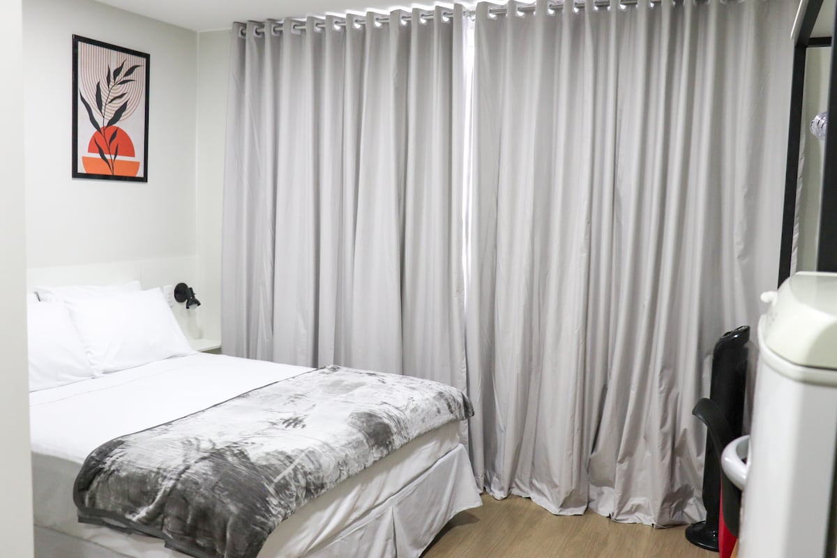 Apartamento no Centro de São Paulo. Fica apenas a 4 min do metrô Sé e da Catedral, e a 7 min da Rua 25 de março. Quarto aconchegante, com cama de casal, ar-condicionado, varanda, TV Smart 40, bancada para trabalho e refeições e Wi-Fi 300m. Cozinha equipada com frigobar, micro-ondas, tostadeira, Nespresso, fogão elétrico e utensílios. Banheiro com secador de cabelo e ferro de passar. Estacionamento privativo próximo ao prédio. Prédio moderno, portaria 24h, academia, piscina e lavanderia.