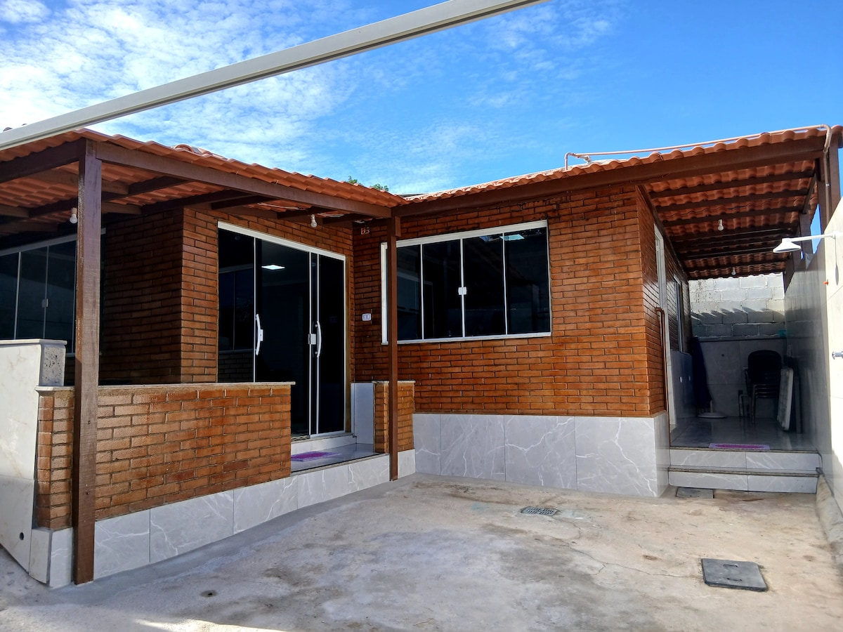 Casa em condomínio fechado ( com apenas 6 casas) com 1 quarto , 2 banheiros , sala ( com 2 sofas cama), cozinha , área de serviço, e uma vaga para seu carro. A 15 minutos de São Pedro da Aldeia, 35 minutos de Cabo Frio e 45 minutos de Arraial do Cabo. Acomodação para até 6 pessoas. A 150 m da Laguna A 200m do comércio de Iguaba Grande.