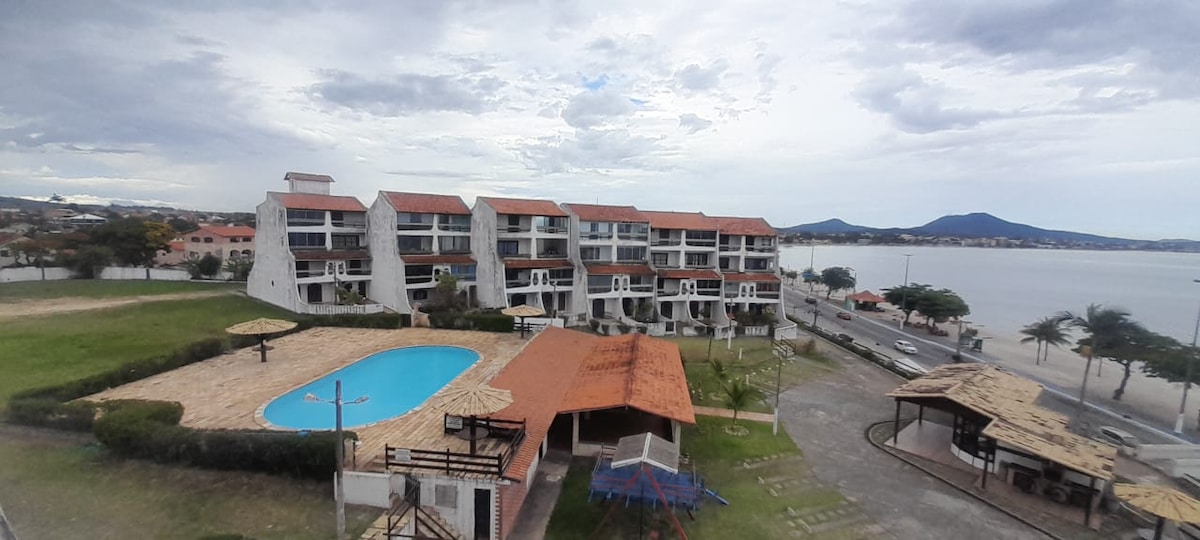 Apartamento mobiliado em Iguaba Grande, em frente à Praia do Popaye, ótima localização: próximo à padaria, mercado, restaurante, academia, quadra de futebol, parquinho para crianças e muito mais! Todas as janelas tem vista para o mar, muito perto da praia, menos de 50 metros, é só atravessar a rua! O apartamento é amplo, possui dois quartos (cada um com uma cama de casal e uma bicama) sala, cozinha completa, banheiro, área de serviço e uma varanda com uma linda vista para a praia.