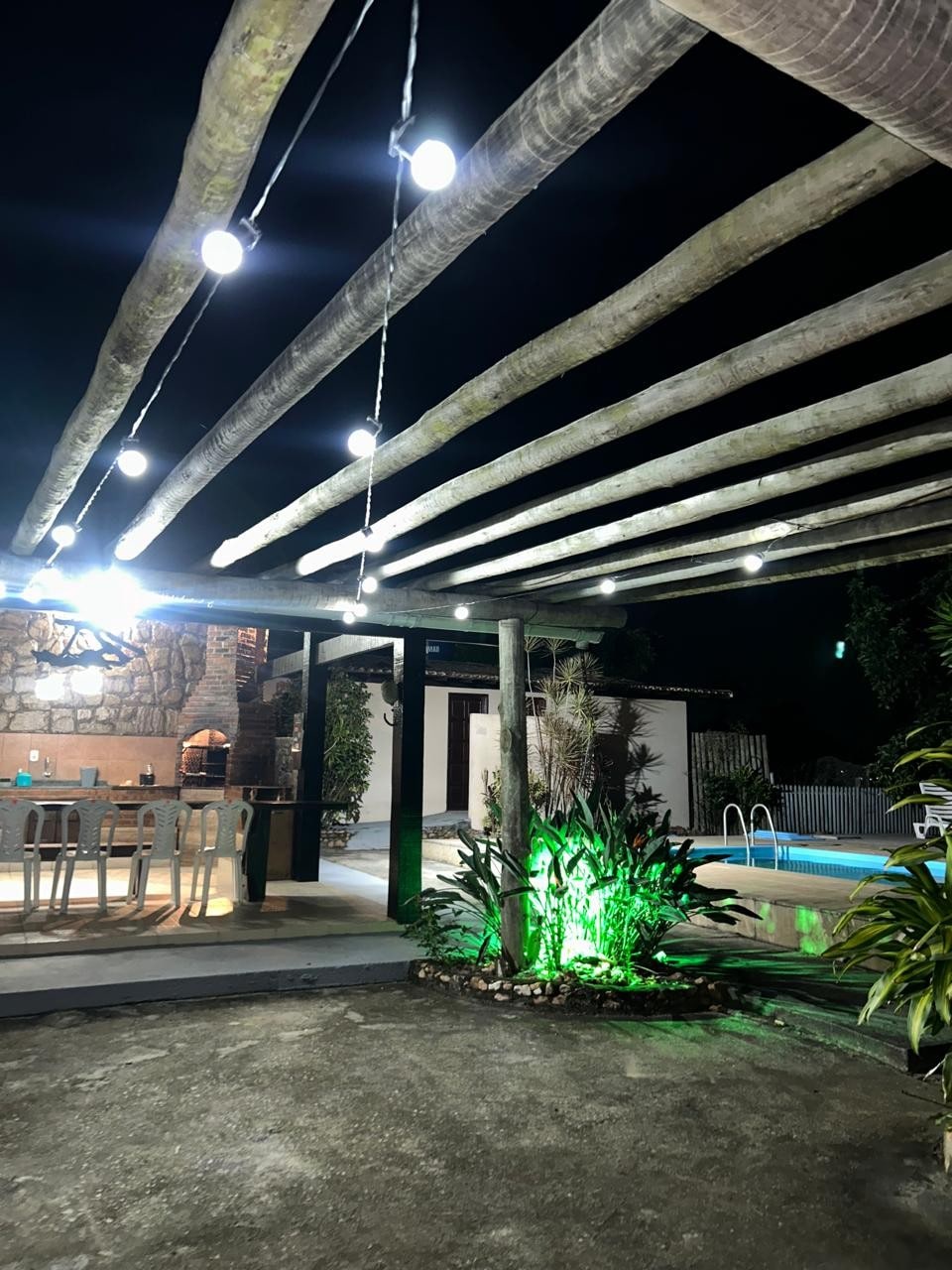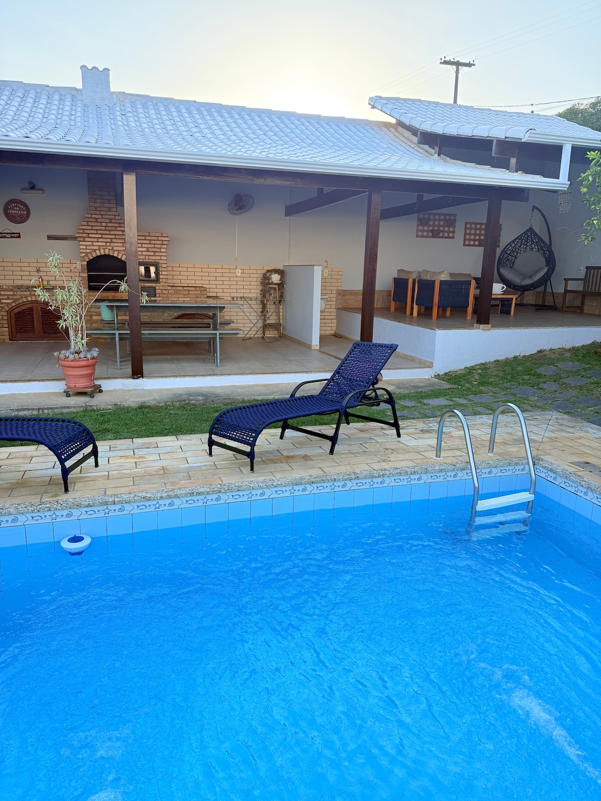 Casa aconchegante com piscina grande e área de lazer, com churrasqueira, pia e bancadas. O imóvel conta com 3 quartos, TODOS COM AR CONDICIONADO SPLIT, e 3 banheiros. Existem ainda 2 colchões de solteiro. Sala ampla com ventilador de teto. TV de 50 polegadas. TV a CABO - INTERNET WI-FI. Cozinha equipada com todos os utensílios necessários. Móveis e eletrodomésticos novos, além de forno de microondas, cafeteira, liquidificador, grill, espremedor e purificador de água.