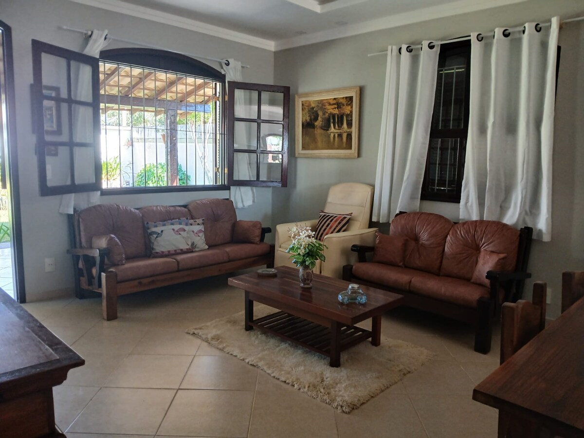 A casa é espaçosa e ideal para acomodar uma família grande ou um grupo maior de pessoas. O imóvel conta com uma suíte mais quatro quartos, todos com ar condicionado, garantindo conforto e privacidade. Perfeito para quem busca um ambiente amplo e acolhedor, área gourmet ampla, com piscina e churrasqueira, ótima área de lazer coberta com sinuca e garagem para até 5 carros, perfeita para descanso e lazer.