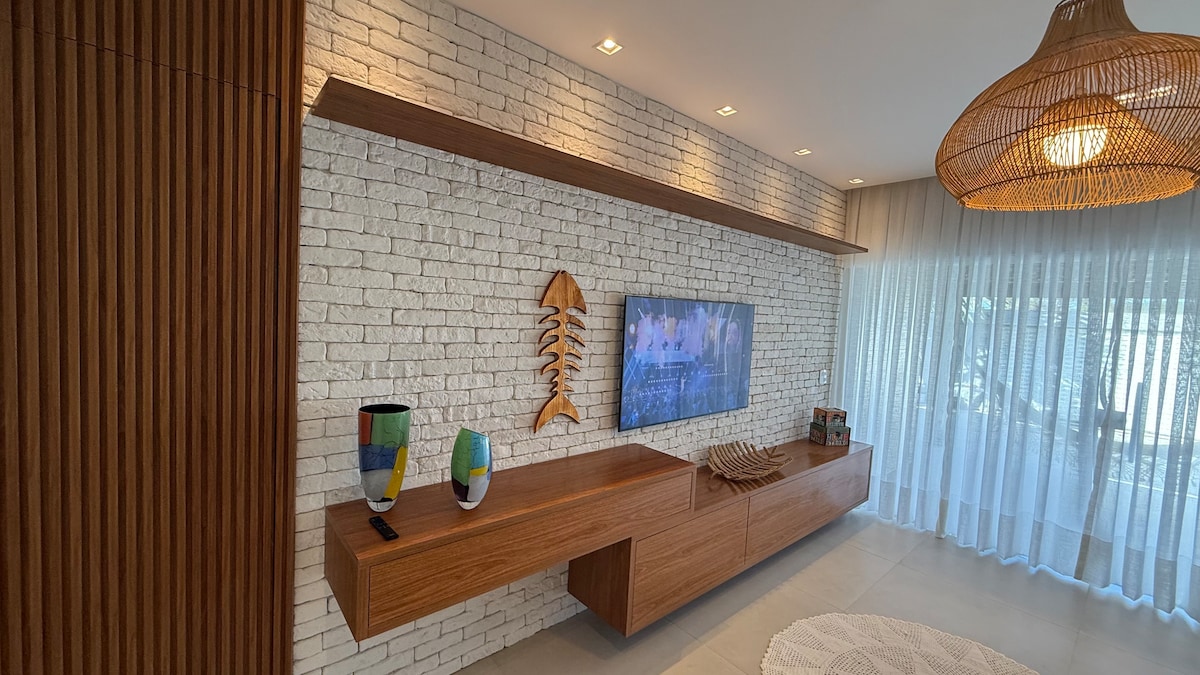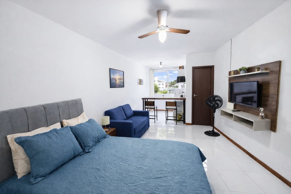 Ótimo apartamento com sala, quarto, cozinha, banheiro e varanda. Fica próximo a lagoa com uma parte reservada ao condomínio, nele podemos encontrar uma sala de jogos, churrasqueira, quadra de esportes e parquinho para crianças. Acesso da praia por trás do condomínio. (Com Desconto semanal de 13% Fechando 7 noites ou mais.)
