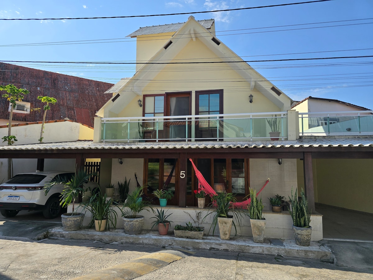Ampla e aconchegante, esta casa é perfeita para grupos de até 8 pessoas. O espaço conta com ambientes integrados e bem ventilados, varanda gourmet com churrasqueira, terraço coberto e banheiro adicional, ideal para momentos de lazer e confraternização. Localizada próxima ao centro, com fácil acesso a mercados, farmácias e restaurantes, é o refúgio ideal para quem busca conforto e praticidade em Iguaba Grande, na Região dos Lagos do Rio de Janeiro.