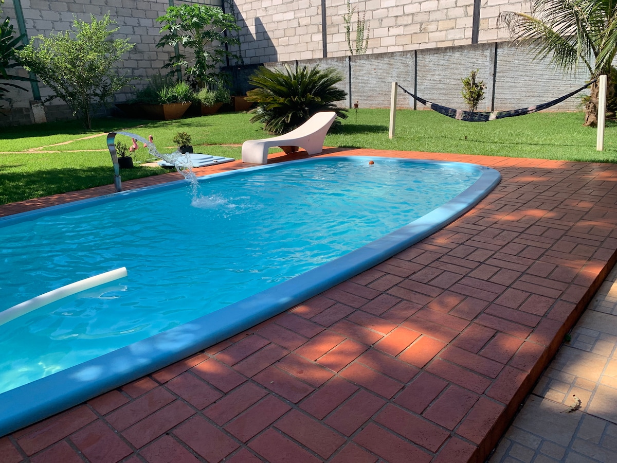 Leve toda a família a este ótimo lugar com muito espaço para seu momento de descanso e laser. Ambiente com 4 suítes e 1 banheiro externo, 4 suítes com ar- condicionado , sala de estar, sala de jantar, edícula com churrasqueira, pia, piscina cozinha completa incluindo geladeira, micro-ondas, forno elétrico, liquidificador, sanduicheira e utensílios necessário. Garagem coberta para 2 carros e espaço aberto para mais 3. OBS: piscina não possui aquecedor